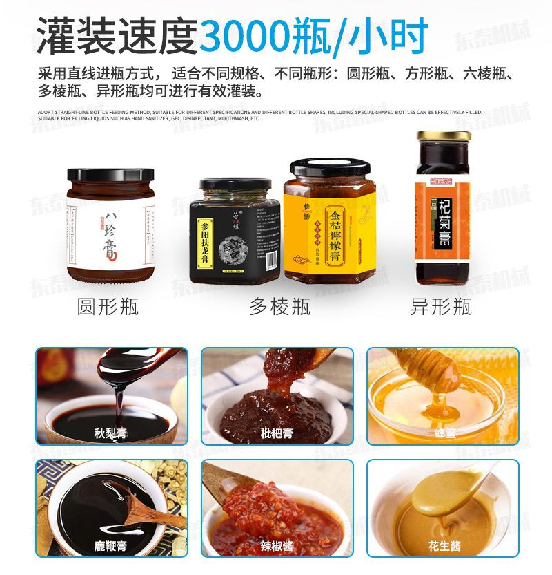 多年的不斷發展自動化蜂蜜灌裝機設備生產過程穩定,噪音低,方便,生產效率高,使企業生產更快。綠色環保理念的引入,使生產變得簡約而不簡單,由于蜂蜜灌裝機流水線設備能給創業者產生權益,開始被愈來愈多的創業者所重視和使用了,伴隨著我國各個行業的迅速發展趨勢,經過自主創新的蜂蜜灌裝機設備在程序編程控制板普遍應用于自動控制系統擁有使用計算機系統控制,故障自我診斷,有信號顯示,達到了較高的技術含量高,顯然蜂蜜灌裝機設備贏得了市場認可。